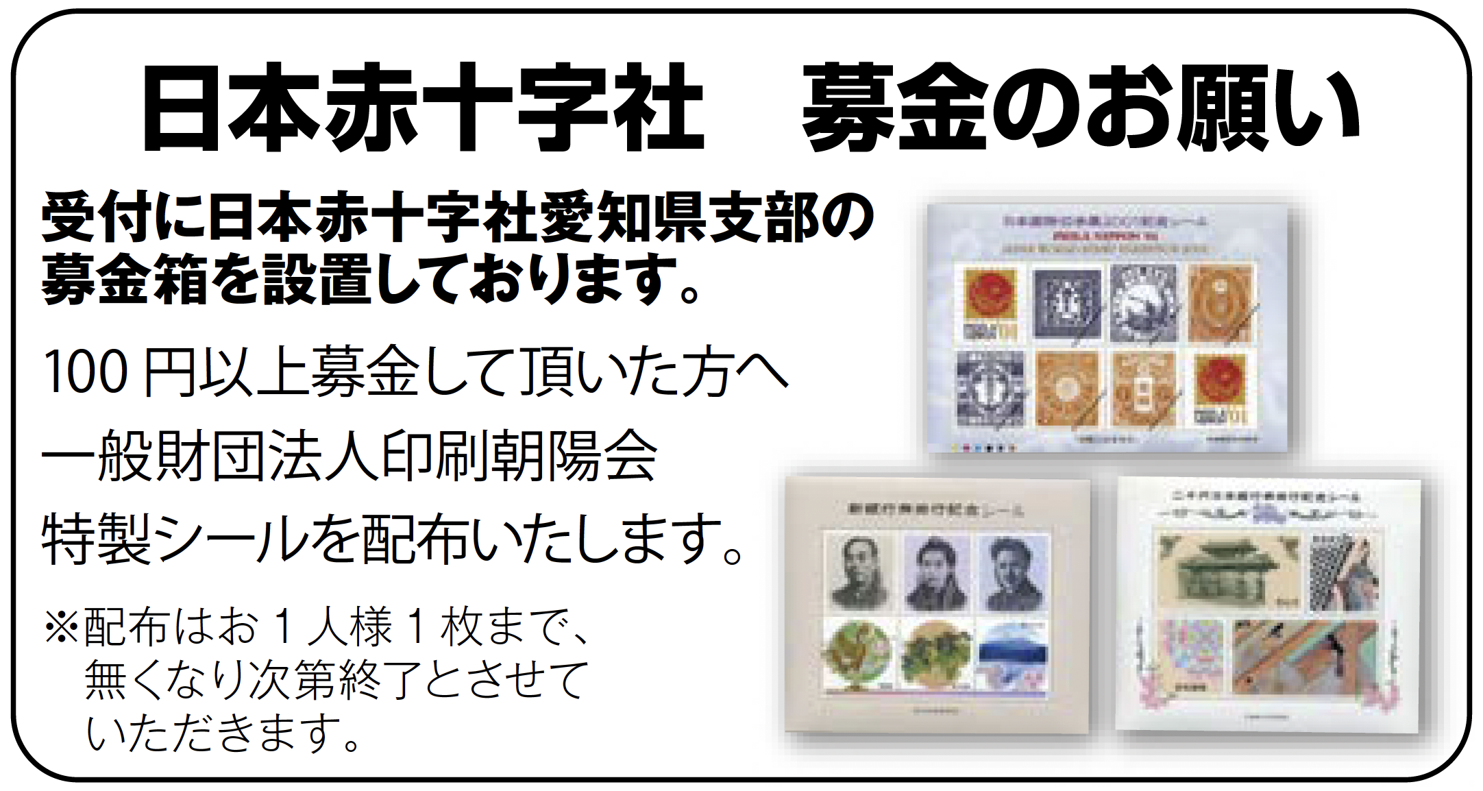 後援:独立行政法人 造幣局・独立行政法人 国立印刷局・中日新聞社会事業団・日本赤十字社愛知県支部・日本郵便切手商協同組合