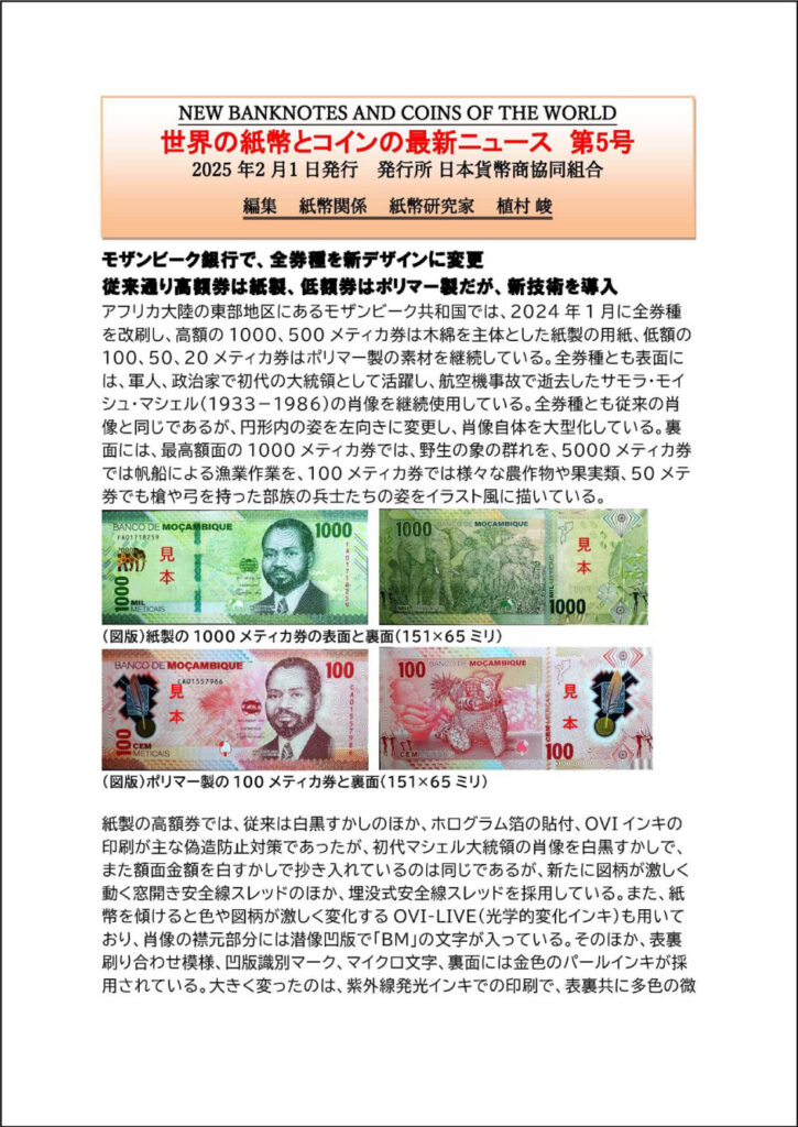 組合・会誌「世界の紙幣とコインの最新ニュース」2025年2月号を公開しました。