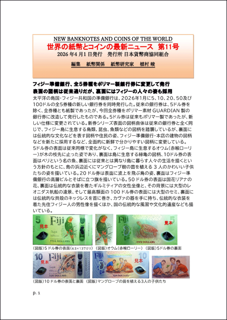 組合・会誌「世界の紙幣とコインの最新ニュース」2026年4月号を公開しました。