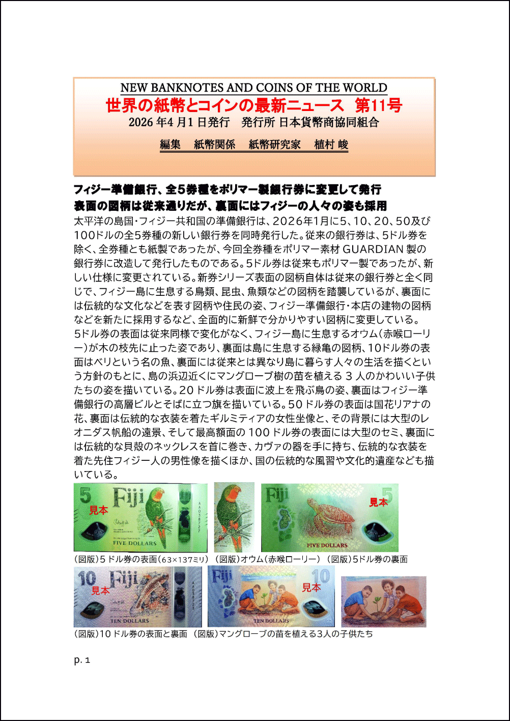 世界のコイン、銀行券の最新情報をご紹介する、書店では手に入らない会誌「世界の紙幣とコインの最新ニュース」の2026年4月号を公開しました。